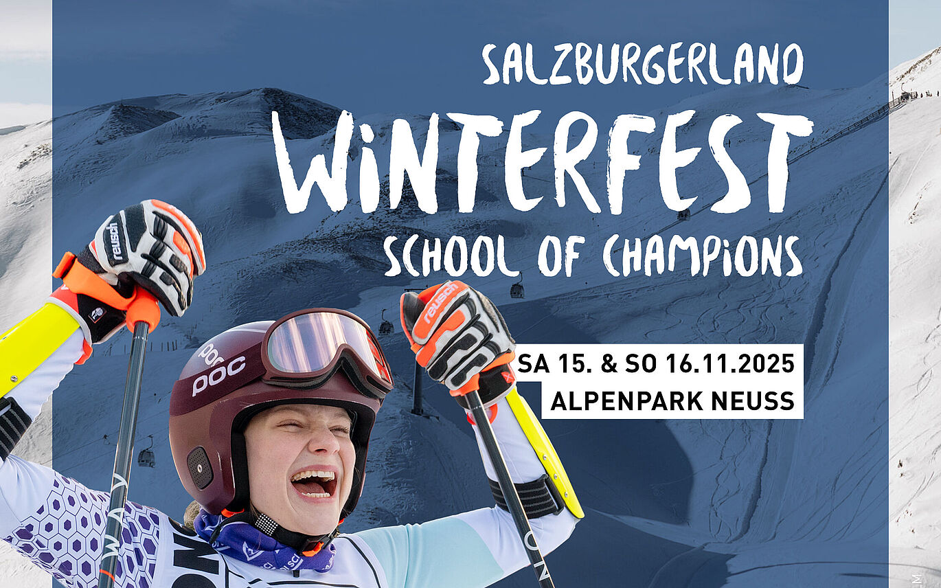 Das SalzburgerLand Winterfest kehrt zurück in den Alpenpark Neuss – diesmal unter dem Motto "School of Champions". Erlebe Schnee, Sport & Abenteuer und werde selbst zum Schneechampion!
